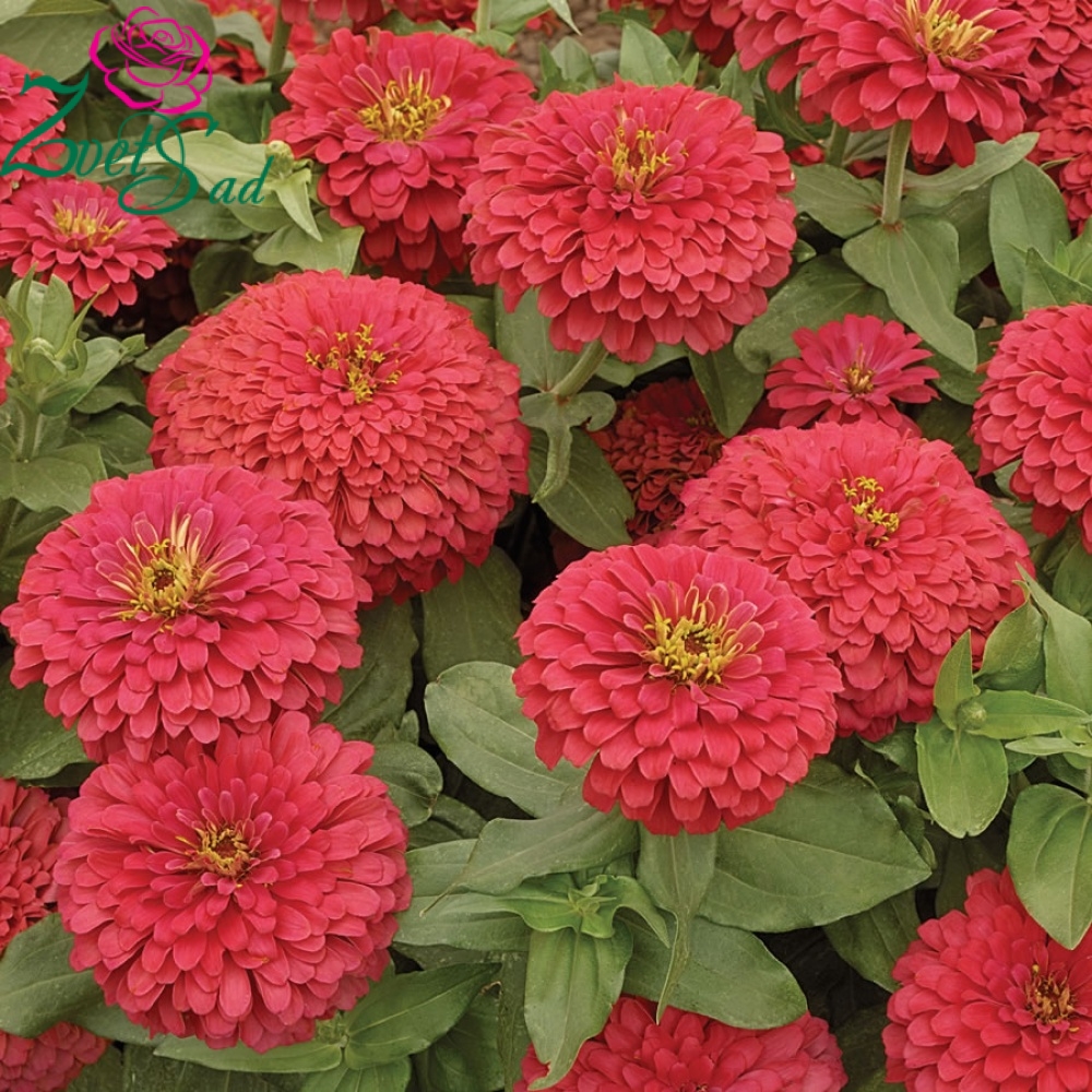 Изумительная смесь однолетних, георгиновидныхцинний. Растения высокорослые, высотой 80-90 см,с крупными, махровыми соцветиями, диаметром до15 см, различных окрасок. Декоративность, выносливость, устойчивость к неблагоприятным условиям и легкость в уходе, делают циннию незаменимым растением для декорации сада. Используют для посадкив цветники, клумбы и срезки. Срезанные цветы долгостоят в воде. Цветение обильное и продолжительное,с июня и до заморозков. Регулярное удаление увядших соцветий способствует более пышному цветению.