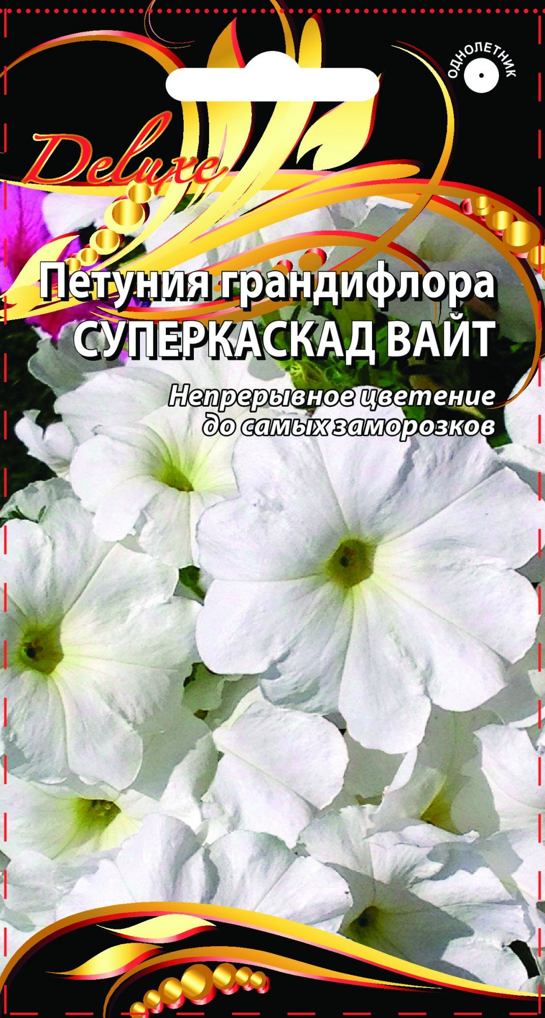 ПЕТУНИЯ Суперкаскад Вайт, грандифлора, крупноцветк (10шт) DeLuxe Цв.пак.(ПТК)